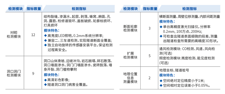 可對隧道洞口、洞門、裂縫類、滲漏水、起層、剝落、檢修道等病害進行快速檢測。
