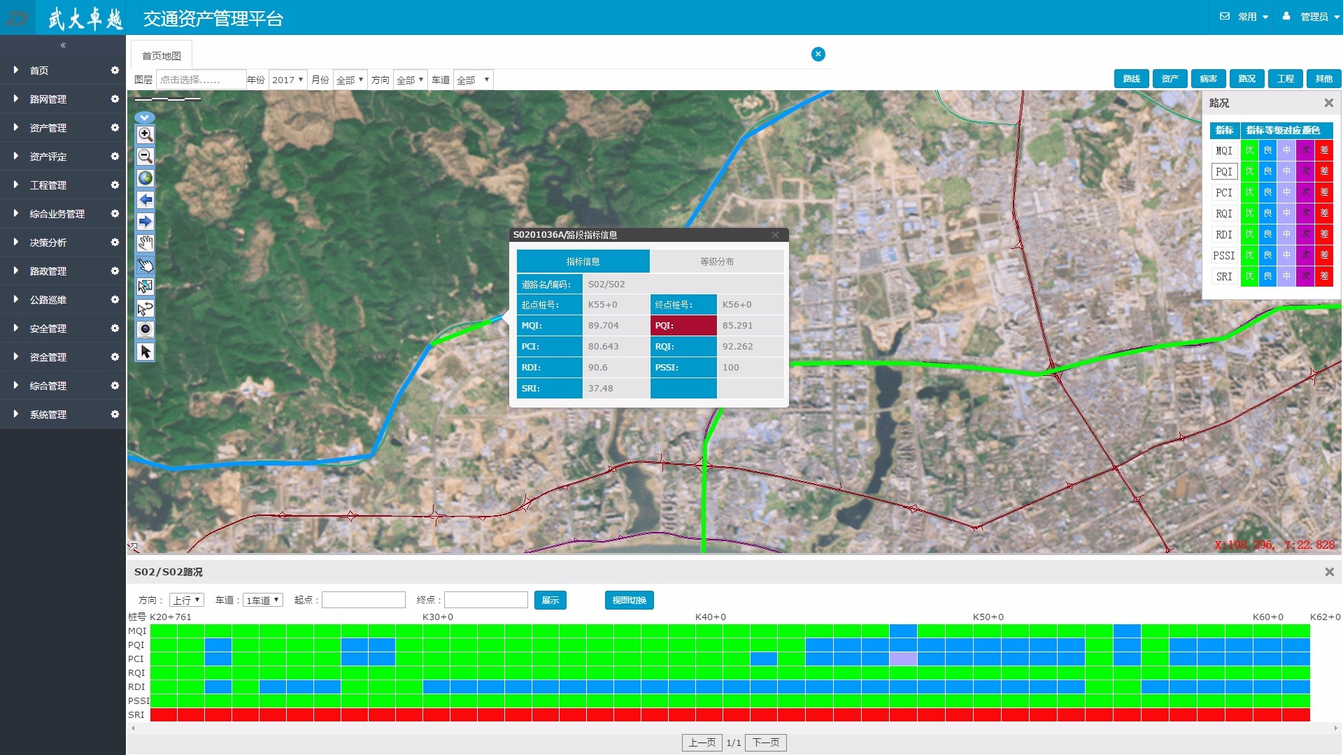 “交通資產(chǎn)管理平臺(tái)”是基于GIS平臺(tái)實(shí)現(xiàn)交通資產(chǎn)(道路、水運(yùn)、航空、鐵路)基礎(chǔ)設(shè)施和綜合業(yè)務(wù)管理。交通資產(chǎn)基礎(chǔ)設(shè)施管理建立交通資產(chǎn)空間和屬性數(shù)據(jù)庫,以資產(chǎn)一張圖提供資產(chǎn)管理服務(wù);綜合業(yè)務(wù)管理基于統(tǒng)一門戶和工作流引擎,以業(yè)務(wù)一平臺(tái)實(shí)現(xiàn)多維度、全周期、自閉環(huán)和流程化的業(yè)務(wù)協(xié)同。通過整合交通資產(chǎn)的基礎(chǔ)信息、技術(shù)狀況、運(yùn)營狀況,實(shí)現(xiàn)交通網(wǎng)全局信息的集中管理和統(tǒng)籌規(guī)劃,為大數(shù)據(jù)時(shí)代的智慧交通提供決策支撐數(shù)據(jù)。