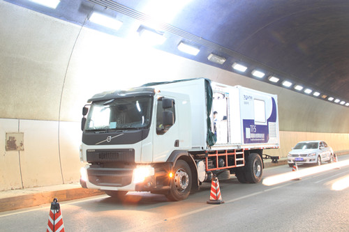 ??? “以1公里的隧道為例,人工測(cè)量約需20人耗時(shí)4小時(shí)才能完成。”武漢武大卓越科技有限責(zé)任公司副總裁胡丹丹先生介紹,該公司自主研發(fā)的首臺(tái)隧道快速測(cè)量系統(tǒng)以中型卡車作為車載平臺(tái),在平臺(tái)上安裝多個(gè)精密傳感器,時(shí)速可達(dá)80公里/小時(shí),每日檢測(cè)里程可達(dá)約500公里,裂縫精度達(dá)到0.2毫米,只需要一名司機(jī)和一名技術(shù)操作人員,通過(guò)無(wú)損檢測(cè)的方式完成所有隧道綜合數(shù)據(jù)的采集工作。