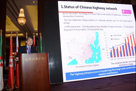 李清泉教授的特邀報(bào)告題為“Comprehensive?Road?Detection??Technology”(“公路技術(shù)狀況綜合檢測(cè)技術(shù)”)的報(bào)告。他指出,二十一世紀(jì)以來,我國(guó)道路邁向大規(guī)模養(yǎng)護(hù)階段,由于高端養(yǎng)護(hù)技術(shù)和裝備的匱乏,道路管理普遍實(shí)施以“矯正性”為主的養(yǎng)護(hù)策略,導(dǎo)致通行質(zhì)量差、安全隱患大以及使用壽命短等問題,浪費(fèi)十分嚴(yán)重。傳統(tǒng)的道路整體質(zhì)量的評(píng)估方法只能采用人工抽檢,存在檢測(cè)精度差、效率低下、事故頻發(fā)并影響交通,嚴(yán)重制約了我國(guó)道路交通事業(yè)的發(fā)展。經(jīng)近十年的研究,項(xiàng)目團(tuán)隊(duì)在無損檢測(cè)技術(shù)和微弱信號(hào)處理方法方面取得了突破性成果,研制了國(guó)內(nèi)首臺(tái)激光動(dòng)態(tài)彎沉測(cè)量裝備、系列道路檢測(cè)裝備和國(guó)內(nèi)首臺(tái)隧道檢測(cè)裝備,成果在全國(guó)范圍內(nèi)得到廣泛應(yīng)用,提升了我國(guó)道路養(yǎng)護(hù)檢測(cè)水平。