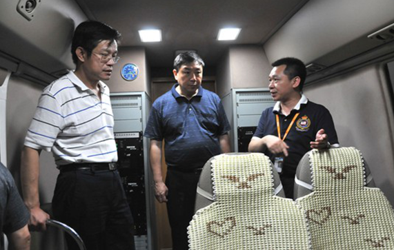 圖2:楊躍承副主任(中)檢測(cè)車(chē)內(nèi)參觀(guān)
