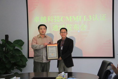 ? 2011年9月21日上午10點(diǎn),在卓越科技二樓會(huì)議室舉行的CMMI?3級(jí)認(rèn)證通過(guò)發(fā)布會(huì)上,由美國(guó)SEI授權(quán)的主任評(píng)估師劉海笑鄭重宣布:經(jīng)過(guò)嚴(yán)格的現(xiàn)場(chǎng)審核和評(píng)估,卓越科技已經(jīng)達(dá)成了CMMI3級(jí)的目標(biāo),成功通過(guò)CMMI3級(jí)認(rèn)證!