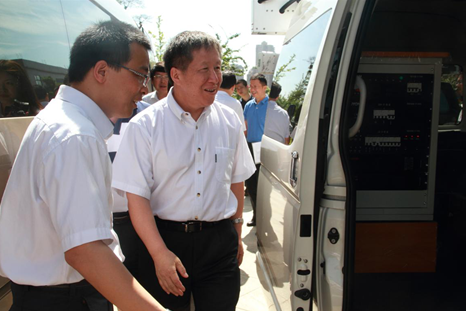 卓越科技作為國家地球空間信息產(chǎn)業(yè)化基地的核心企業(yè)之一,第一個向曹健林副部長一行作了工作匯報。卓越科技副總裁張德津博士詳細(xì)地向曹健林副部長介紹了卓越科技自主研發(fā)的智能道路檢測系統(tǒng)。曹健林副部長詳細(xì)地了解到了智能道路檢測系統(tǒng)的系統(tǒng)結(jié)構(gòu)、系統(tǒng)功能、市場價值,以及目前卓越科技取得的成績,并表示非常滿意。