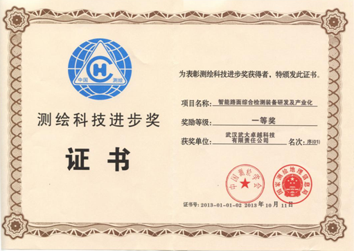 ? “智能路面綜合檢測裝備”又稱“智能道路檢測車”系統(tǒng)。該系統(tǒng)集成了路面破損檢測系統(tǒng)、前方景觀測量系統(tǒng)、平整度測量系統(tǒng)、車轍測量系統(tǒng)、GPS定位定姿測量系統(tǒng)、DMI測距系統(tǒng),配套開發(fā)了路面信息管理系統(tǒng)。車輛正常行駛過程中,能自動完成道路病害圖像、路面形狀、沿線設(shè)施立體圖像、平整度、構(gòu)造深度及道路幾何線形等數(shù)據(jù)的采集。該項目通過了湖北省科技廳科學(xué)技術(shù)成果鑒定,該項目研究成果整體上達到了國際領(lǐng)先水平。